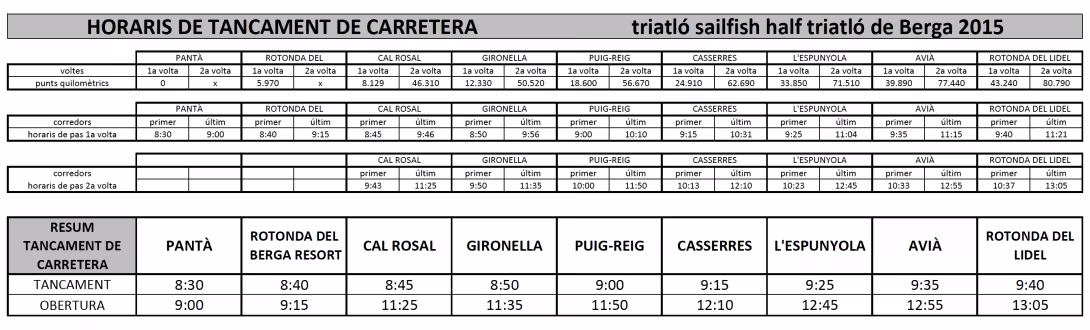 El desenvolupament de la competició provocarà talls de trànsit. Les afectacions a Berga es poden consultar en el següent mapa i adjuntem també els horaris i talls als municipis de la comarca.