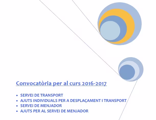 Avui s'ha obert la convocatòria per presentar les sol·licituds per al curs 2016-2017 de servei de transport, ajuts individuals per a desplaçament i transport, servei de menjador i ajuts per al servei de menjador.