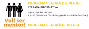 Des del Comitè Català d’Acollida a les Persones Refugiades, conjuntament amb el Consell Comarcal del Berguedà, l’Ajuntament de Berga i Creu Roja – Berguedà s’organitza una xerrada informativa per a presentar a tota la ciutadania El Programa Català de Refugi i més concretament, el Programa de Mentoria. Aquest Programa constitueix una acció solidària i de responsabilitat envers el dret al refugi dels ciutadans i ciutadanes demandants de protecció internacional amb l’objectiu de que puguin assolir l’autonomia social i laboral així com la plena ciutadania. L’aspecte més innovador del Programa és la participació activa que es dóna a les administracions locals catalanes i a la societat civil mitjançant la figura de la mentoria.