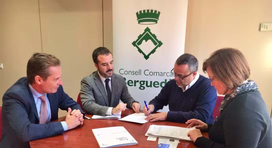 Avui s’ha segellat l’obertura del compte realitzada pel president del Consell Comarcal del Berguedà, Josep Lara, la interventora, Mireia Canal, i per part de Caixa d’Enginyers: el director de la sucursal de Manresa, Alex Giménez, i el director de negoci majorista i interncaional, Jaume Asian.