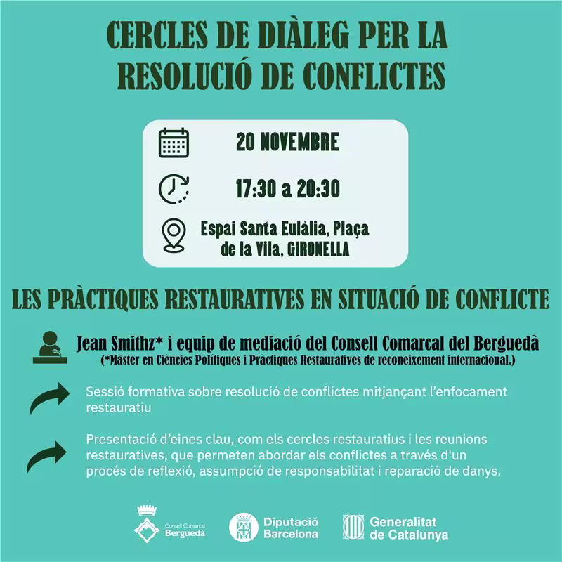 Es presentaran eines clau, com els cercles restauratius i les reunions restauratives, que permeten a estudiants, professors i famílies abordar els conflictes a través d'un procés de reflexió, assumpció de responsabilitat i reparació de danys en lloc de la simple atribució de culpa i aplicació de càstigs.